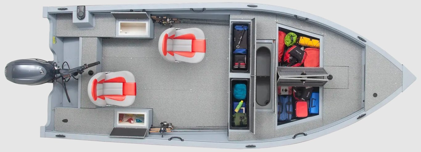 Delivers performance and durability that anglers demand. Its tough V-hull design handles rough waters with ease, while offering stability and control for a comfortable day on the water.