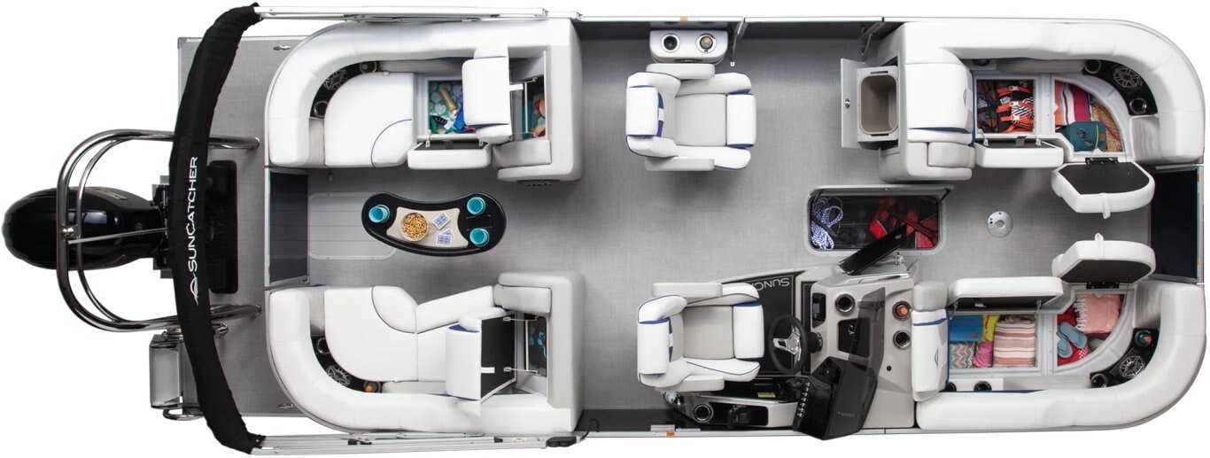 Twin couches at both bow and stern create generous seating and comfort zones for everyone aboard. Elevated speakers provide immersive sound, complemented by RGB lighted cup holders, convenient charging ports, and plush cushioning that sets a new standard for relaxation.