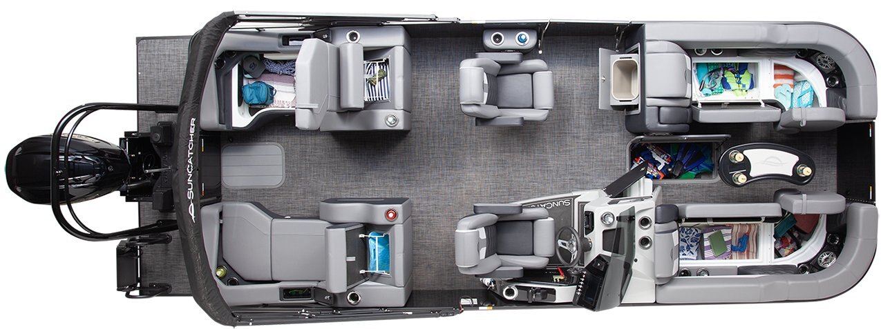 The SunCatcher Elite Series pairs style with strength, featuring leather grain textures, Permablok Plus vinyl, and elegant quilted accents. Finished with detailed trim and matching flooring, these interiors deliver both comfort and a premium look.