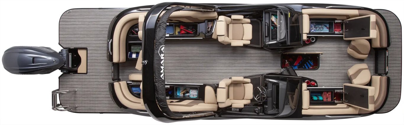 Every SunCatcher Elite is engineered with solid, foam filled pontoon logs and one-piece extruded cross members for lasting durability. A 3/4″ marine-grade deck, backed by a limited lifetime guarantee, and standard under-deck performance shields ensure strength, stability, and confidence on the water.
